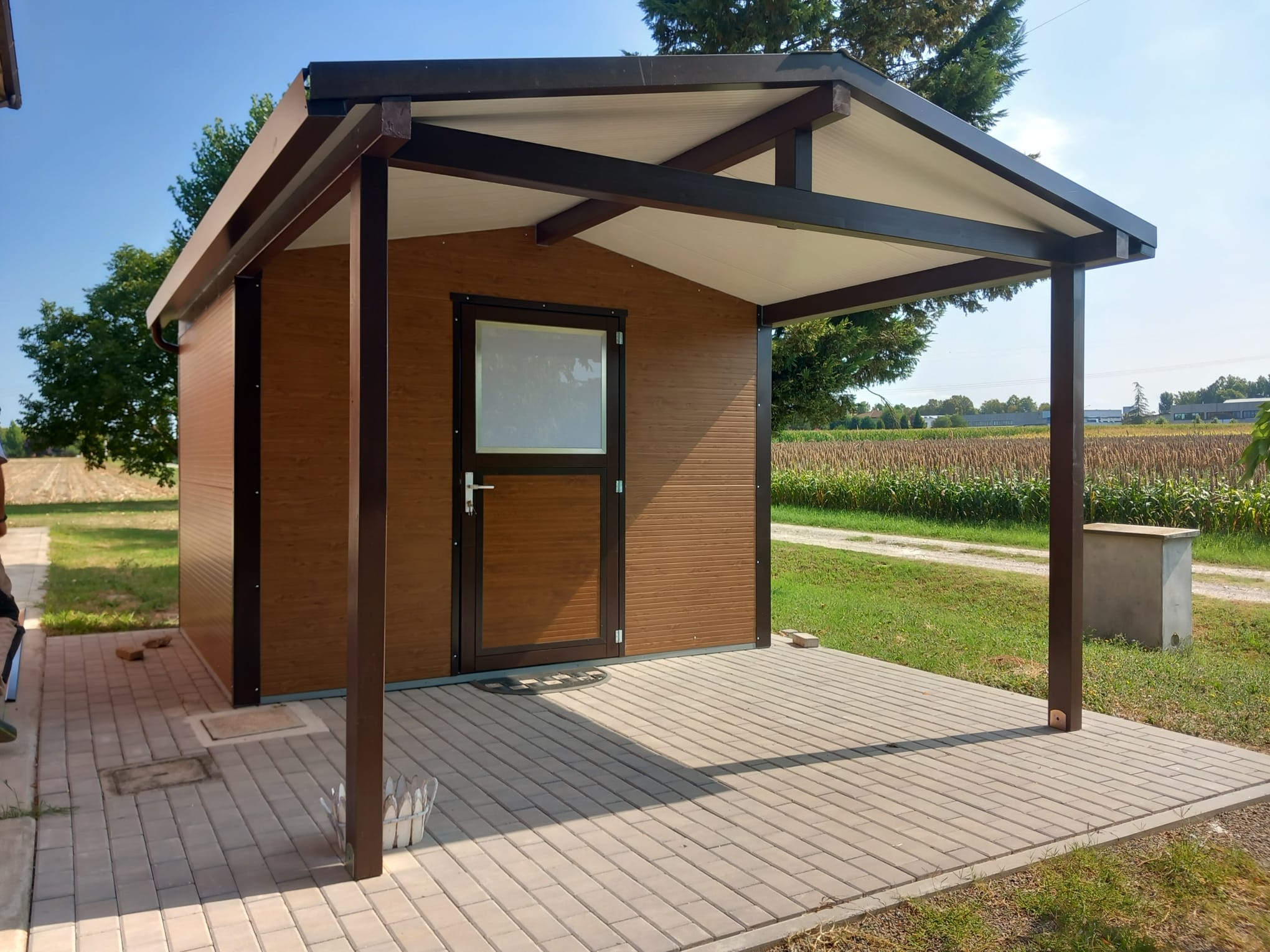 La copertura può arrivare fino a 16 mq si può realizzare fissa, con perlinato di abete e impermeabilizzata con guaina, tegola canadese e coppi in PVC oppure anche con teli fissi sempre in PVC.