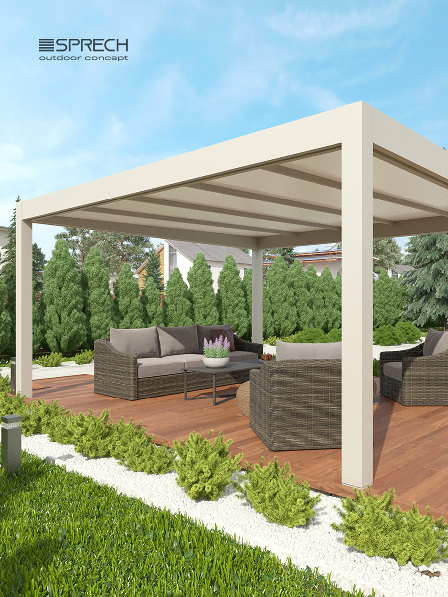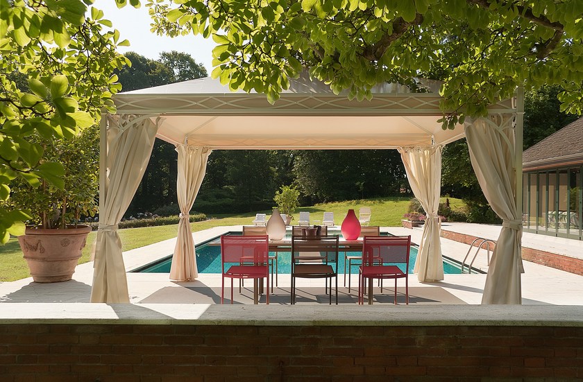Il gazebo è una struttura da esterno autoportante e può essere realizzato interamente in legno o in alluminio e legno.