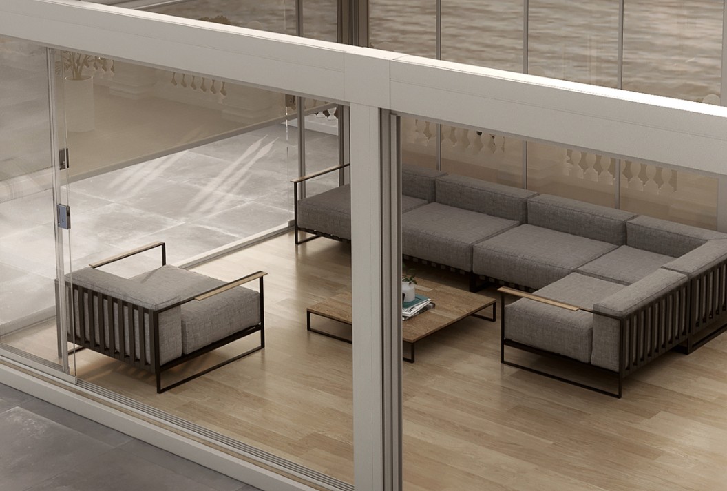 Si possono installare chiusure perimetrali come tende a caduta, grigliati, teli in PVC, telai in legno o alluminio con policarbonato scorrevoli.